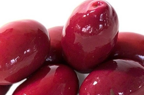 olive rosse sotto salamoia disponibili per la vendita nelle tipologie intere snocciolate e tagliate in rondelle.