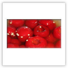 Peperoncino rosso tipo ciliegia (diversi calibri e gradi di piccantezza) sotto salamoia in fusti di plastica