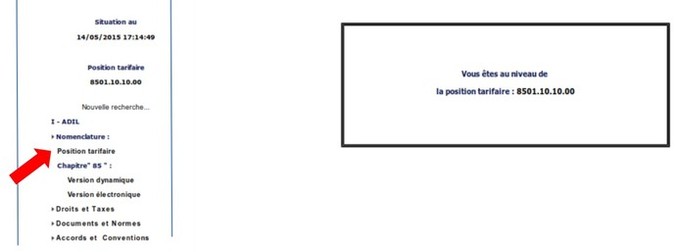 nella colonna sinistra della pagina cliccate sulla voce in francese “position tarifaire”
